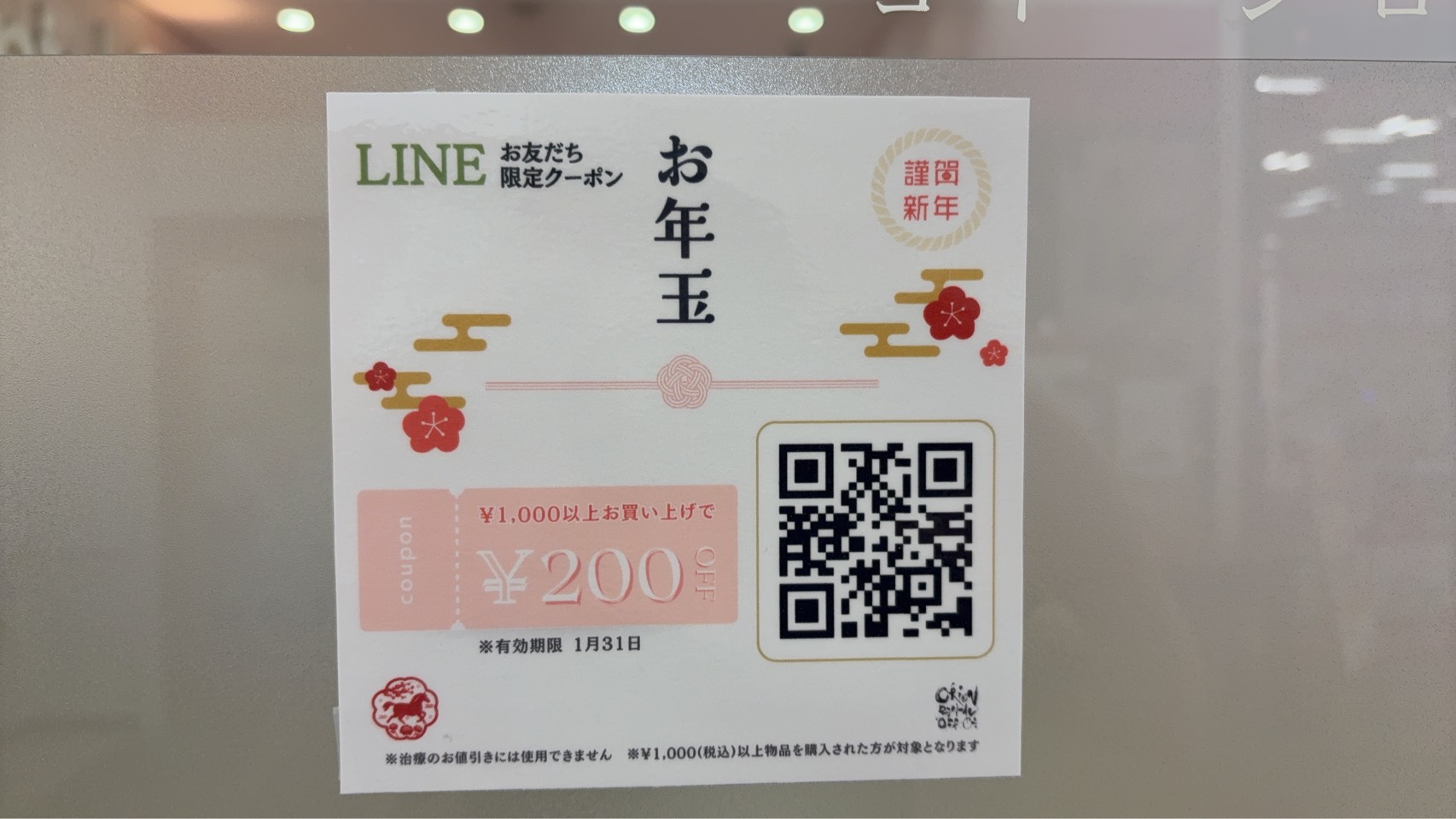 当院とLINEお友達の方限定なのですが、1/31までに税込1000円以上物品購入された方で、